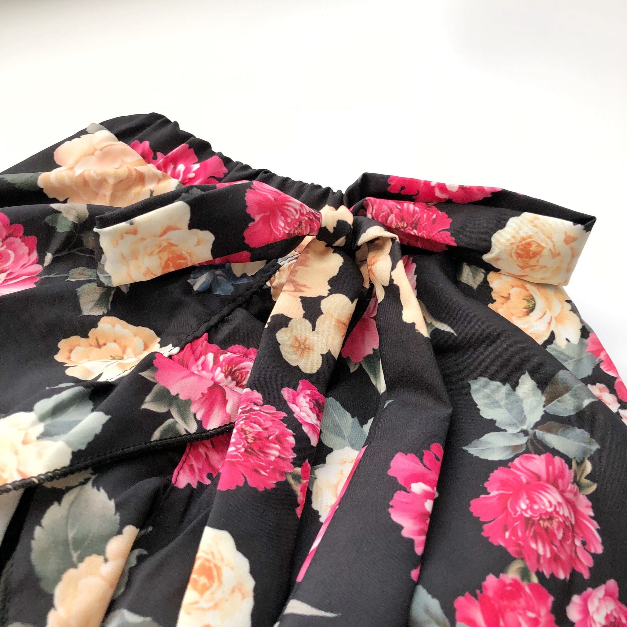 イエローのトップスと、花柄のスカートの2点セットです!トップスは肩紐を首の後ろで結んでいただくタイプになっております(^^)下にインナーを着て着ていただいたり、一枚で着ていただいても可愛いです!