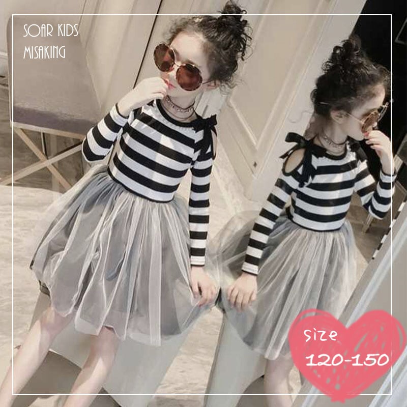 送料無料⭐︎ボーダーチュールワンピース アウトレット 海外子供服