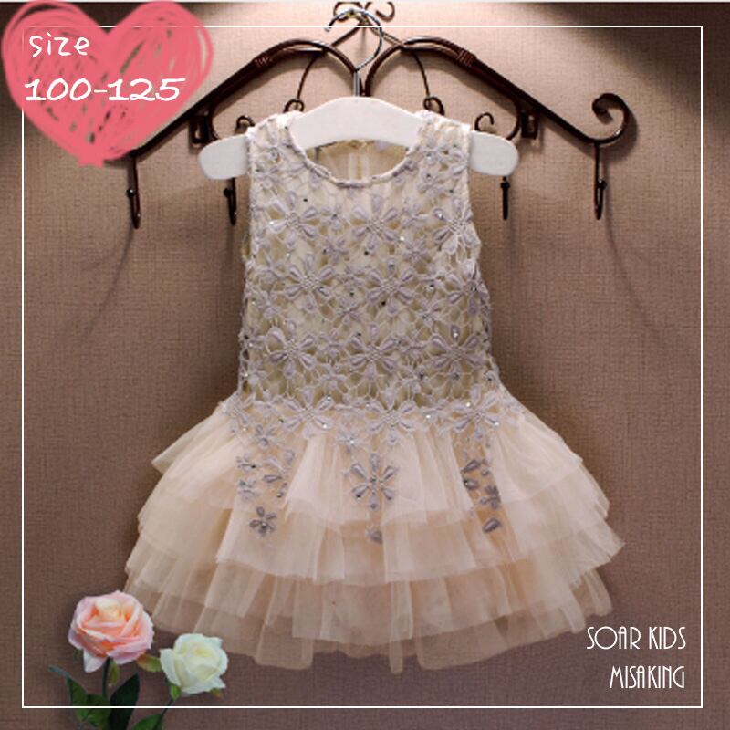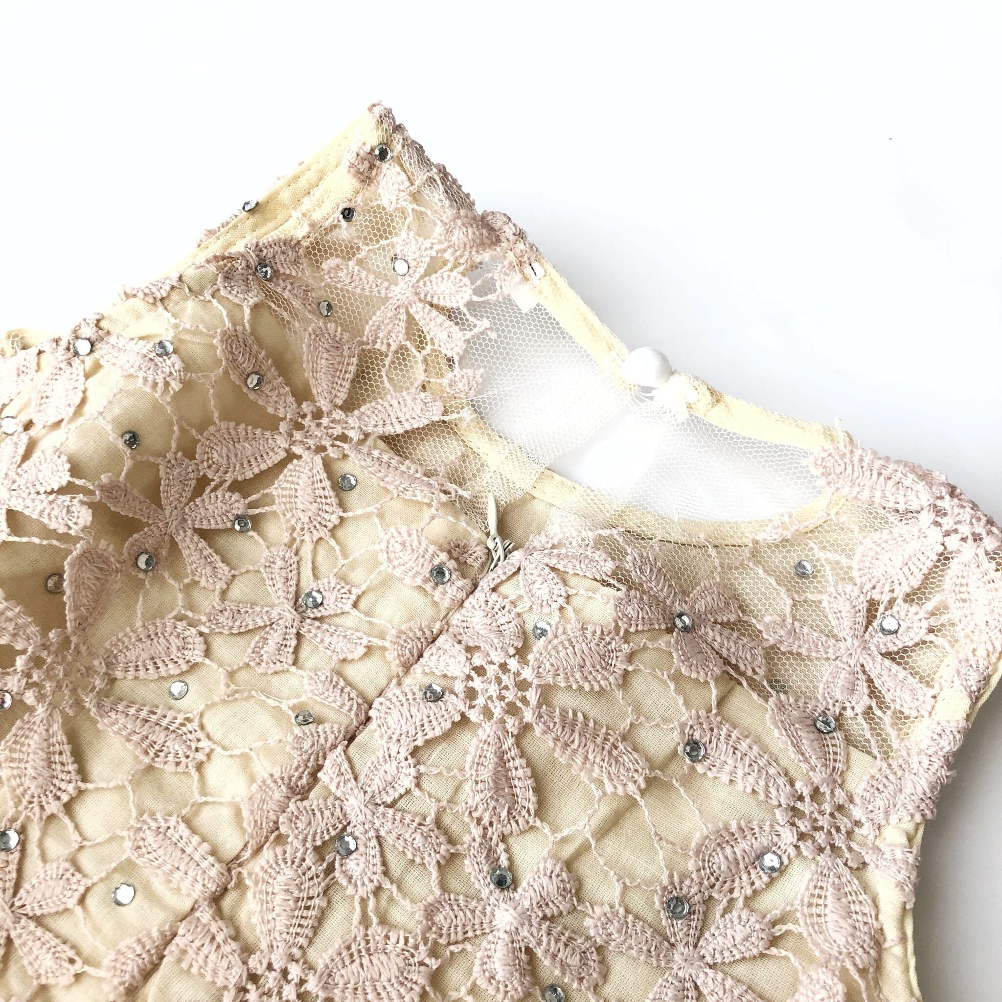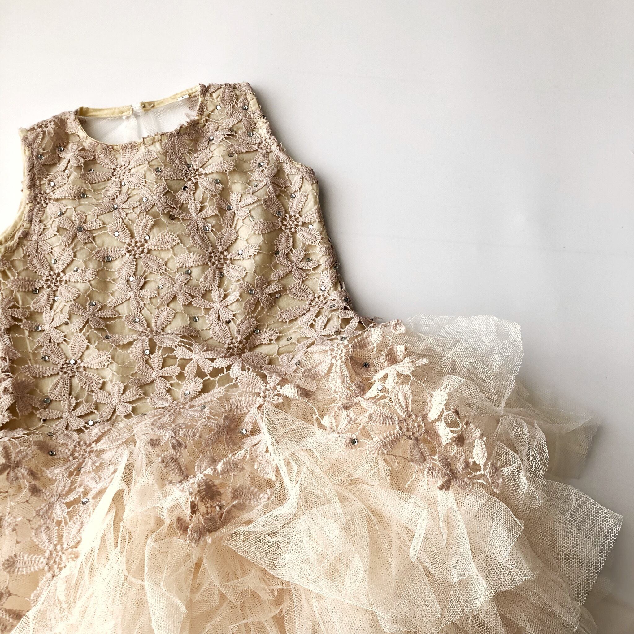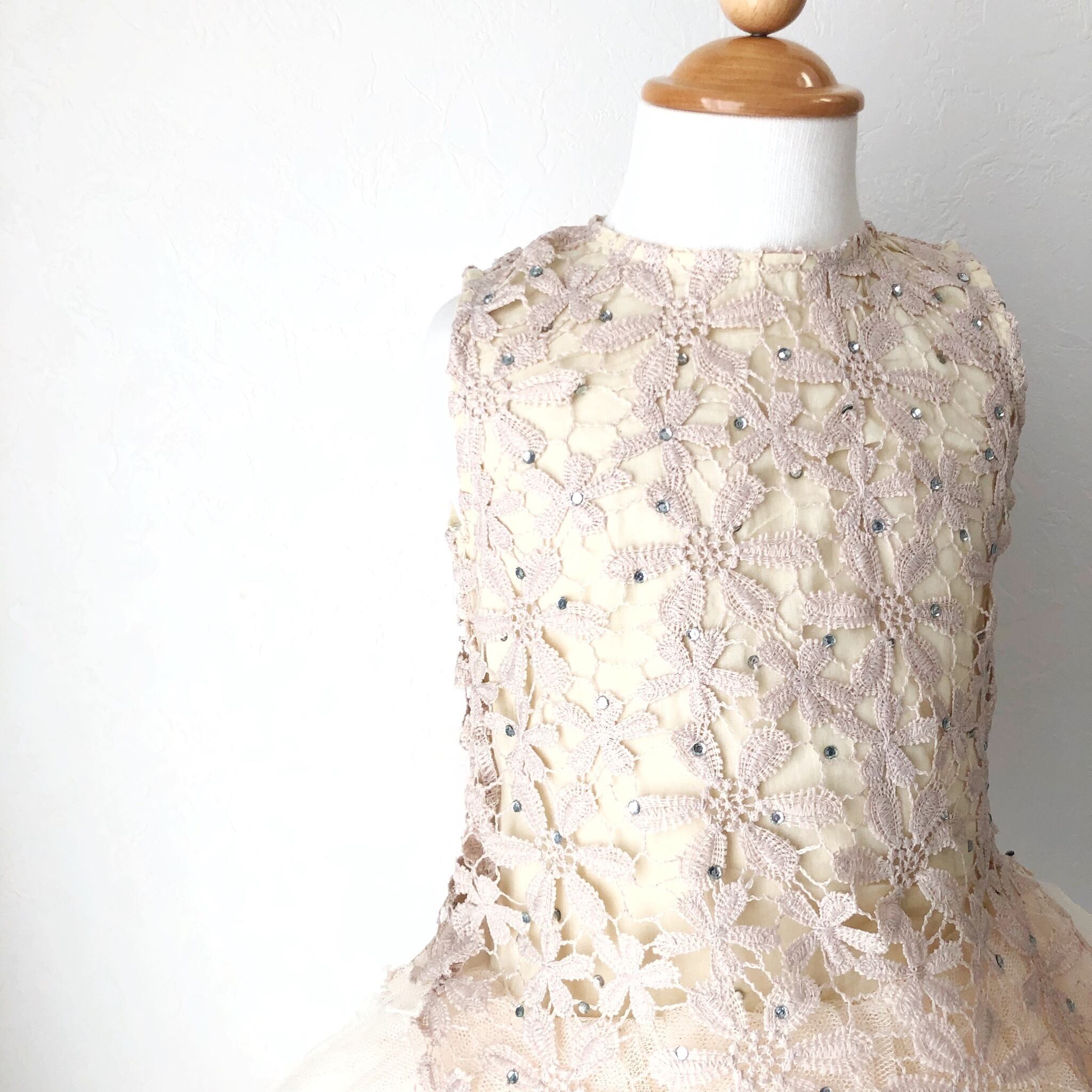 アウトレット⭐️送料無料 ベージュレースドレス 女の子 結婚式 フォーマルドレス海外子供服