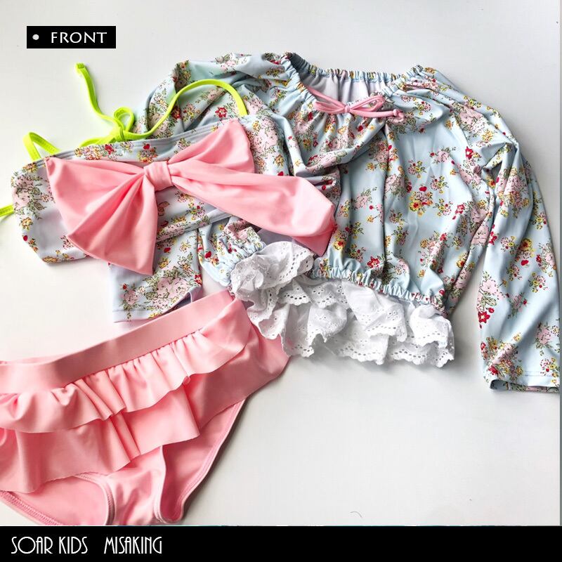 アウトレット●送料無料 フラワーラッシュガードセット水着 海外子供服 海 女の子