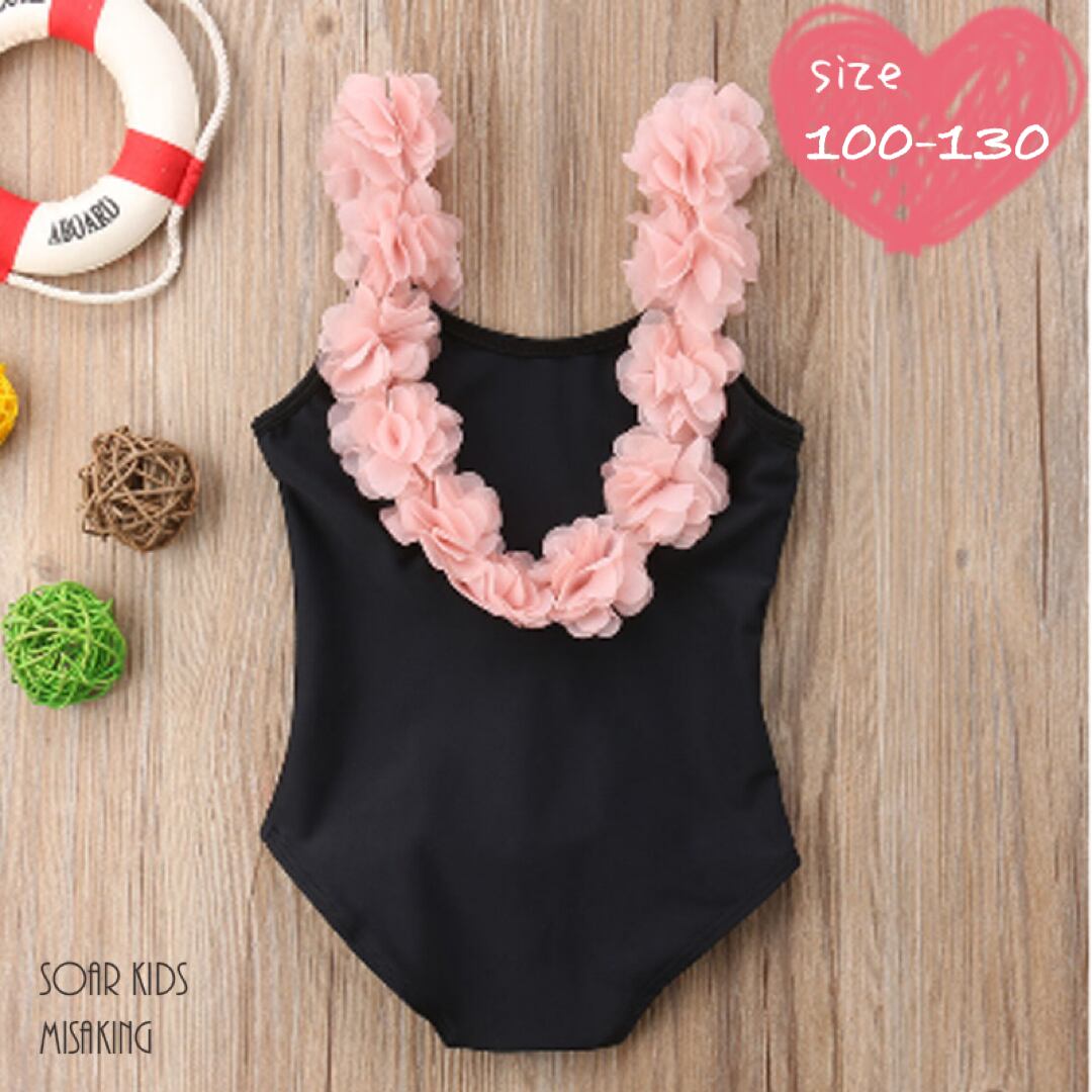 ☆アウトレット ピンクフラワーブラック水着 海外子供服 夏 プール 海 女の子